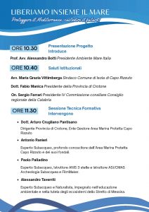 ๐๐ซ๐ซ๐๐ซ๐ข Consigliere Regionale, ๐๐ซ๐ญ๐ฎ๐ซ๐จ ๐๐ซ๐ฎ๐ ๐ฅ๐ข๐๐ง๐จ ๐๐๐ง๐ญ๐ข๐ฌ๐๐ง๐จ, Dirigente del settore 5, il Sindaco di Isola di Capo Rizzuto ๐๐๐ซ๐ข๐ ๐๐ซ๐๐ณ๐ข๐ ๐๐ข๐ญ๐ญ๐ข๐ฆ๐๐๐ซ๐ ๐, ๐๐ง๐ญ๐จ๐ง๐ข๐จ ๐๐๐ง๐ข๐๐ซ๐ข, ๐๐๐จ๐ฅ๐จ ๐๐๐ฅ๐ฅ๐๐๐ข๐ง๐จ ๐ ๐๐ฅ๐๐ฌ๐ฌ๐๐ง๐๐ซ๐จ ๐๐๐ฏ๐๐ซ๐ซ๐ข๐ญ๐ข esperti subacquei.